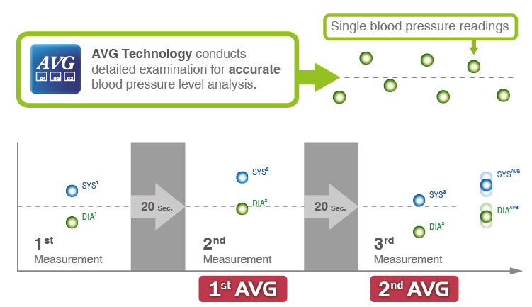 It is common for people to experience a higher reading in their blood pressure when measured in a medical office, commonly referred to as White-Coat Hypertension. In other cases, movements and/or conversing during measurements may also result in inaccurate readings. Therefore, ForaCare developed the Automated Averaging (AVG) technology to overcome this issue, eliminating potential factors for interference and ensuring an accurate reading every time.